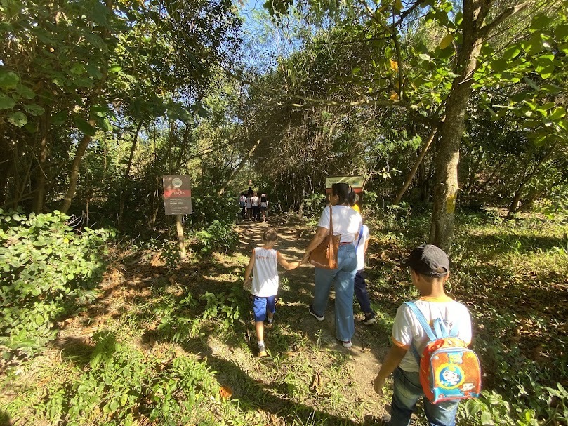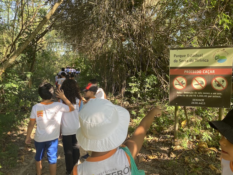 A ação vem sendo desenvolvida em parceria com a Escola Municipal Professor Dario de Souza Castello, cujas turmas visitam a Trilha do Rio João Mendes — localizada em trecho pertencente ao PESET — onde está instalada a ecobarreira. As visitas são guiadas por um condutor local do parque.