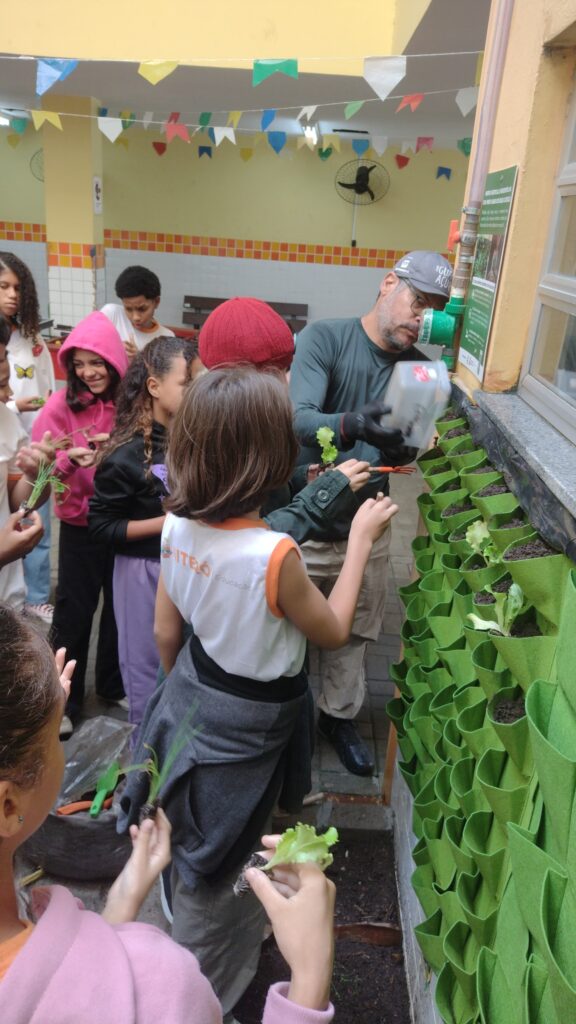 O projeto Horta nas Escolas, realizado em parceria com a Fundação Municipal de Educação de Niterói, tem como objetivo promover a reconexão de crianças, educadores e comunidades escolares com a terra, por meio do cultivo de hortas pedagógicas nos espaços escolares.